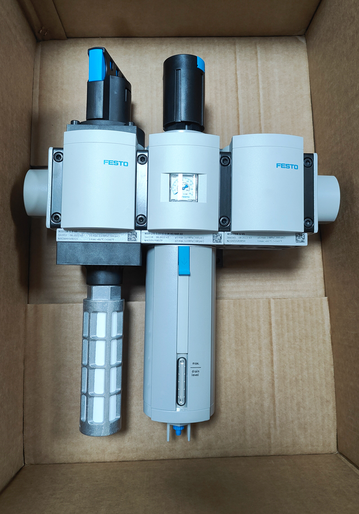 完美的气源制备!凭借其庞大的产品系列、功能强大的组件和广泛的处理功能选择,Festo 的 MS 系列提供了气源制备的完整方案 — 适用于标准应用和特定应用的解决方案。 宽度尺寸 40mm气源处理装置元件可预定义或自由配置根据具体应用场合,组合使用过滤减压阀、过滤器、油雾器、开关阀、软启动阀、分支模块。下面这个是我们根据客户的现场应用,选配的一款精细度高,逐级精细过滤,符合食品级应用,有效节约