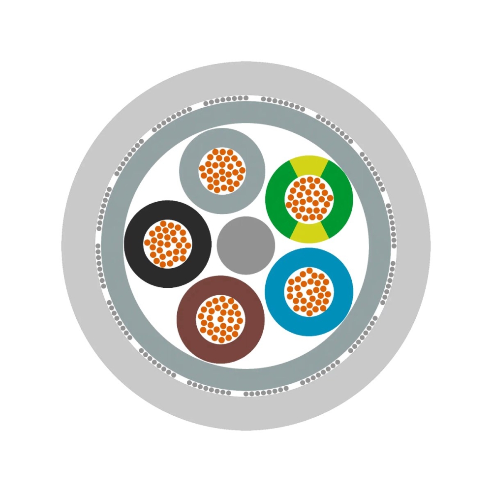 通过挤出式内护套提供额外的坚固性。 通过高覆盖率的铜丝编织屏蔽层可最佳地防止电磁干扰。 高电气安全性得益于4000 V测试电压。 根据欧盟第 305/2011 号指令(BauPVO/CPR)对防火性能进行分类,可在 LAPP 网站上选择产品编号。