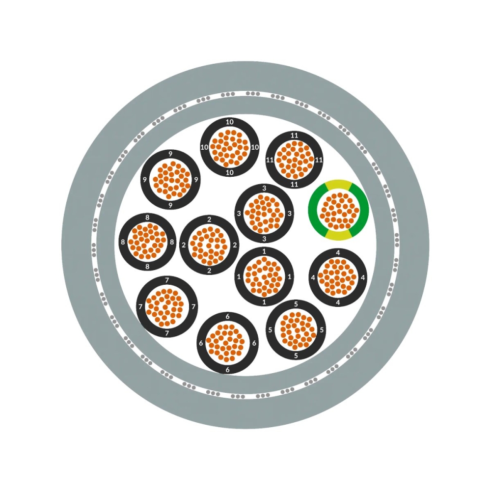 优势 设计极其柔软,易于操作和安装。 无卤且高阻燃材料可降低火灾蔓延、高烟雾浓度和产生有毒烟气的危险。 通过高覆盖率的铜丝编织屏蔽层可最佳地防止电磁干扰。 根据欧盟第 305/2011 号指令(BauPVO/CPR)对防火性能进行分类,可在 LAPP 网站上选择产品编号。 高电气安全性得益于4000 V测试电压。 高耐油性符合 DIN EN 50363-4-1 (TM5) 以及 UL OIL RES I 和 OIL RES II。 根据技术数据获得的 UL 认证使该产品能够在北美市场使用。 DNV 海事认证。 具有多种认证的产品可实现通用性,减少零部件的种类,从而保证节省物流成本。 应用 用于需要满足特殊消防安全要求的建筑布线。 通用于跨工厂控制电路和机器内部控制电路的布线。 尤其适用于对电磁兼容性(EMC)有要求的环境。 用于无拉伸应变的固定安装和偶尔弯曲。 可在干燥和潮湿环境中使用。 适用于中等机械应力。 HFFR 外护套在很大程度上耐酸和碱。 适用于室外。 可在最低 -30 °C 的温度下柔性使用。