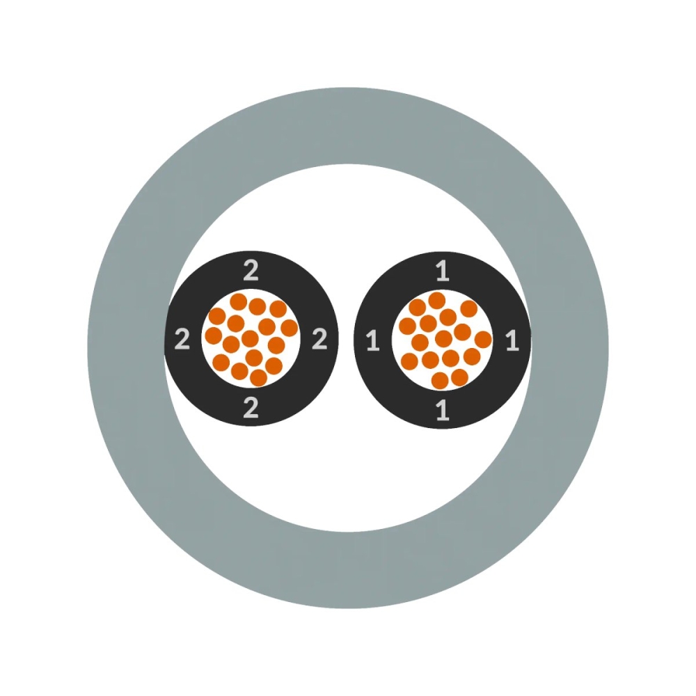 动力和控制电缆; 2X0.5; U0/U: 300/500 V; HFFR; 芯线识别: 号码; 柔性